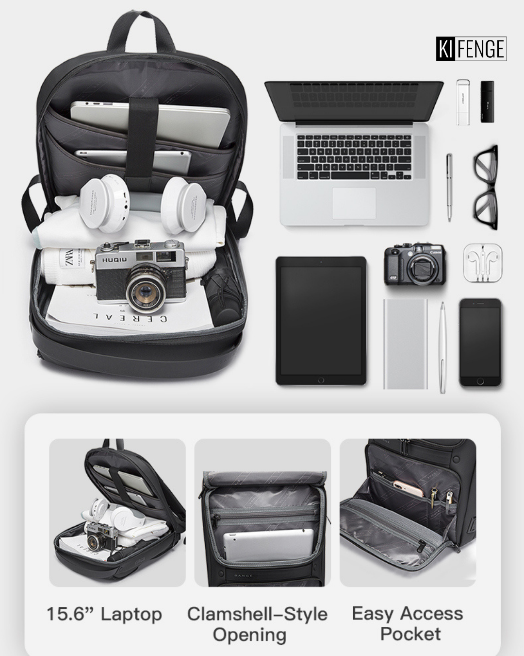 Espace: Compartiments multiples protégé pour ordinateur portable, tablette, documents et accessoires